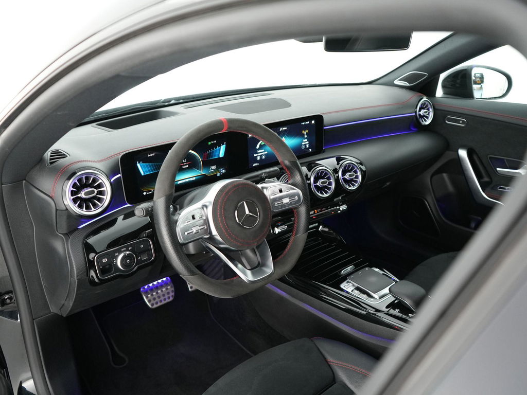 Deze Mercedes-Benz CLA 35 AMG combineert sportiviteit, luxe en technologie in één dynamisch pakket. Uitgevoerd met het gewilde AMG Line exterieur straalt hij pure sportiviteit uit dankzij de AMG-styling met voorspoiler en sideskirts, de verbrede wielkasten en de fraaie 19 inch AMG dubbelspaaks velgen. Het Night pakket geeft de auto extra karakter met hoogglans zwarte details die perfect contrasteren met de elegante Cosmoszwart metallic lak.